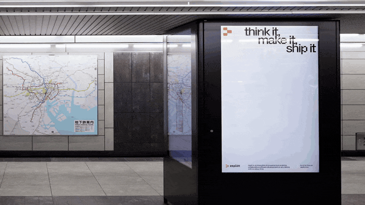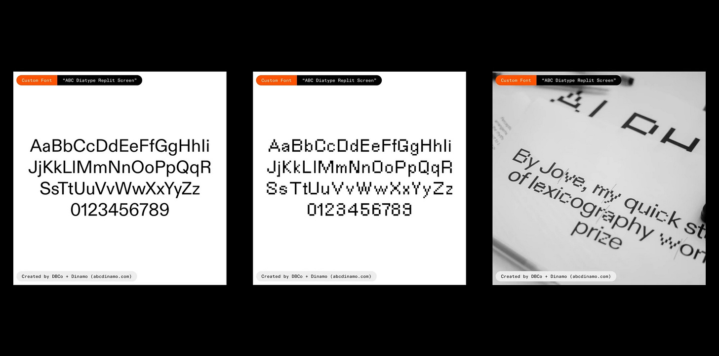 To reinforce that sense of speed and iteration, we worked with Dinamo to create a custom typeface: Replit Diatype. Built from pixel-like forms, it carried the feeling of motion — fast, iterative, alive, like the REPL loop itself.