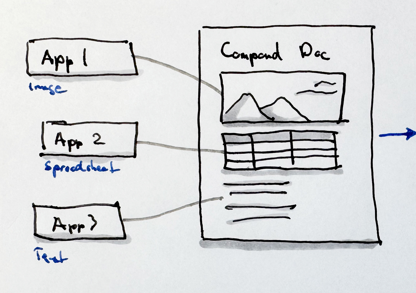 Users wouldn’t open a single application to work. Instead, they’d open a document that could contain different embedded parts from different vendors. For example, a single document might contain text from one company’s editor, graphics from another’s tool, and a spreadsheet grid from yet another.