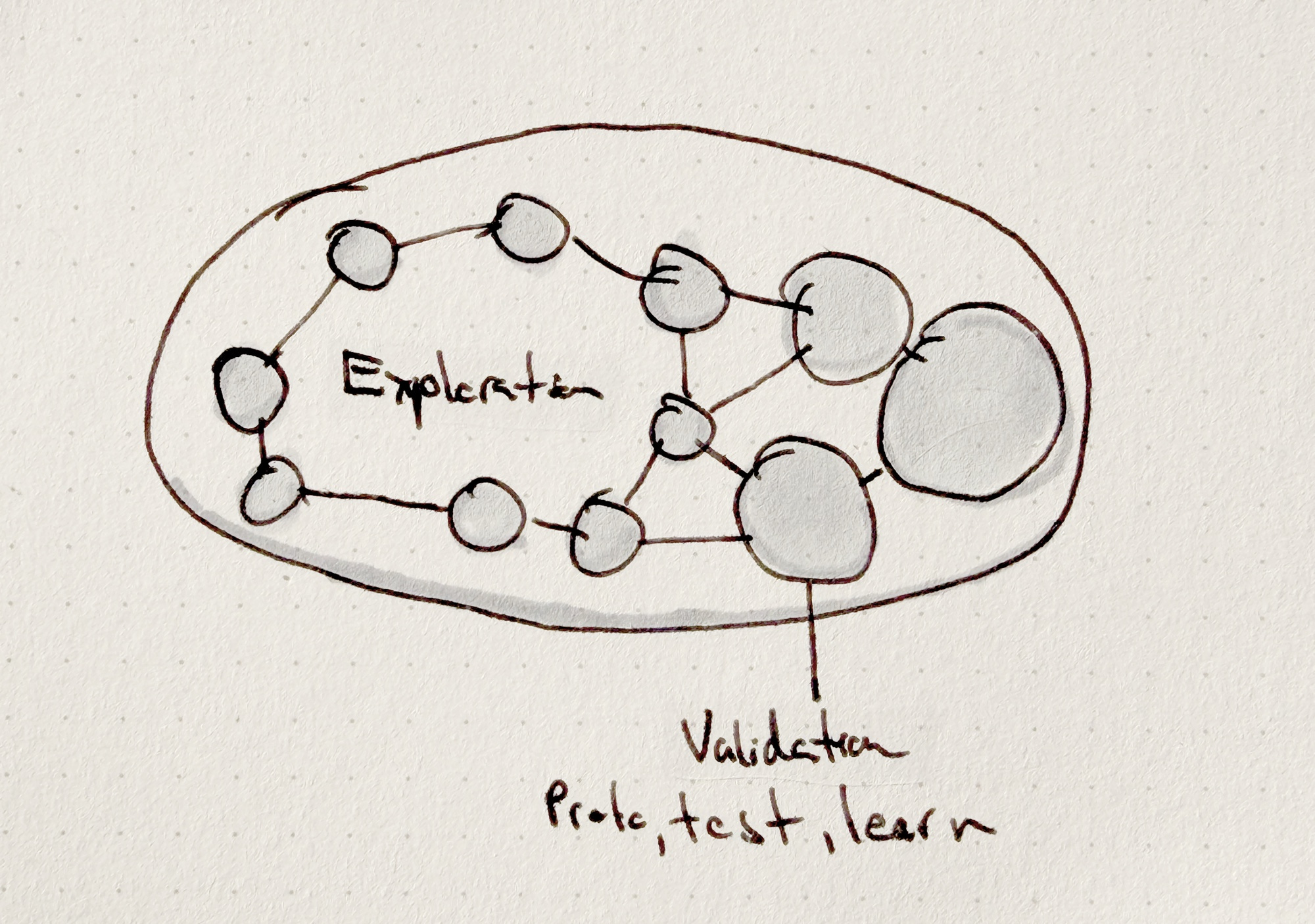 Both loops orbit around the central uncertainty: What should we build? The Goal informs where you’re headed. The Build is the outcome of successfully navigating that uncertainty.