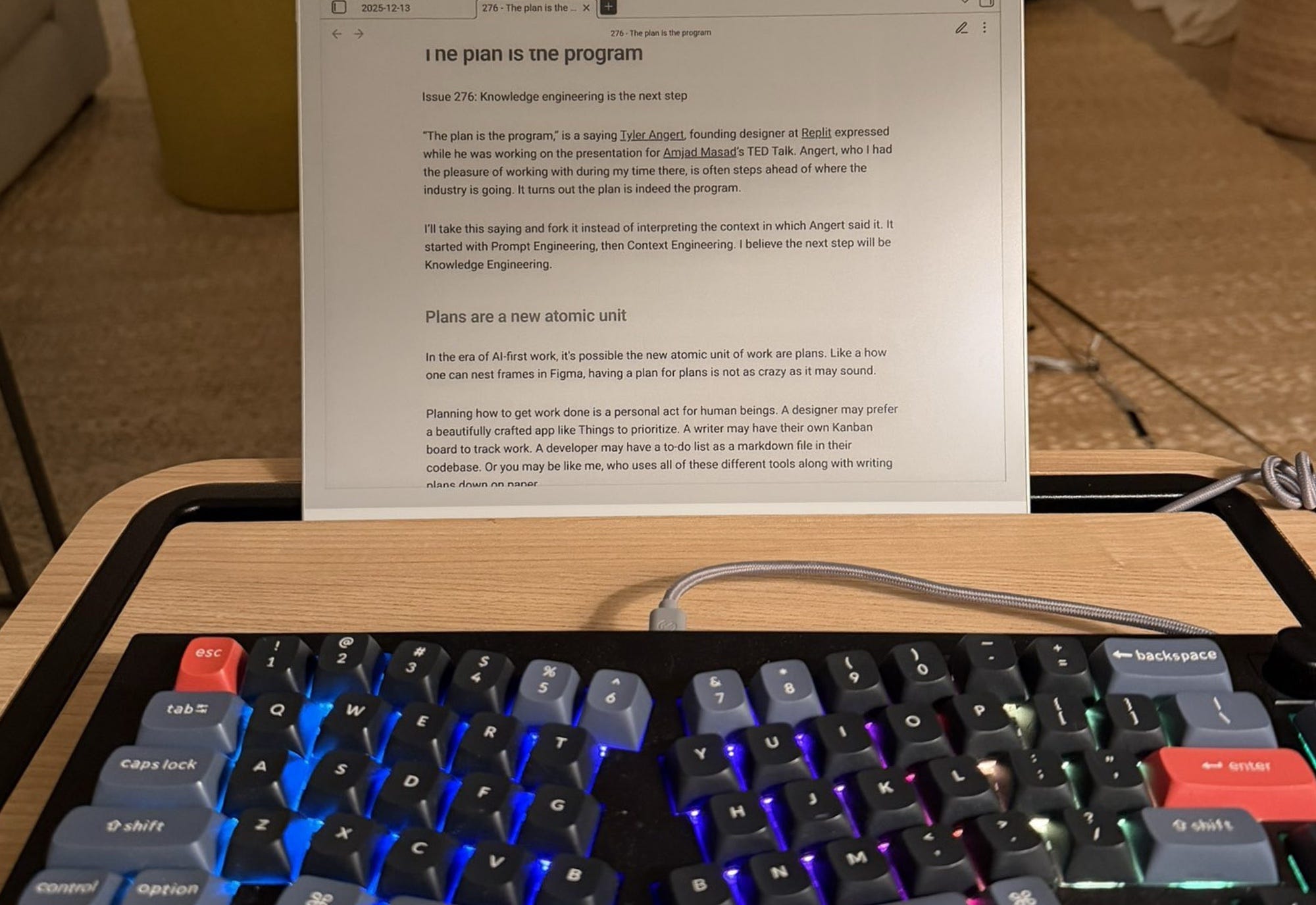 I didn’t go fully analog. That part was deliberate. My e-ink tablet stayed as part of the natural light week. I recently purchased a Boox Note Max because it does not have a front light. I didn’t want a device that would tempt me to sit in bed with a “less worse” artifical light. I can draft, reorder, and read without the constant visual signal of light being emitted at me. It gives me continuity without pulling me back into the same attentional state as a laptop or phone. My e-ink tablet serves as a research, writing, and sketching tool.