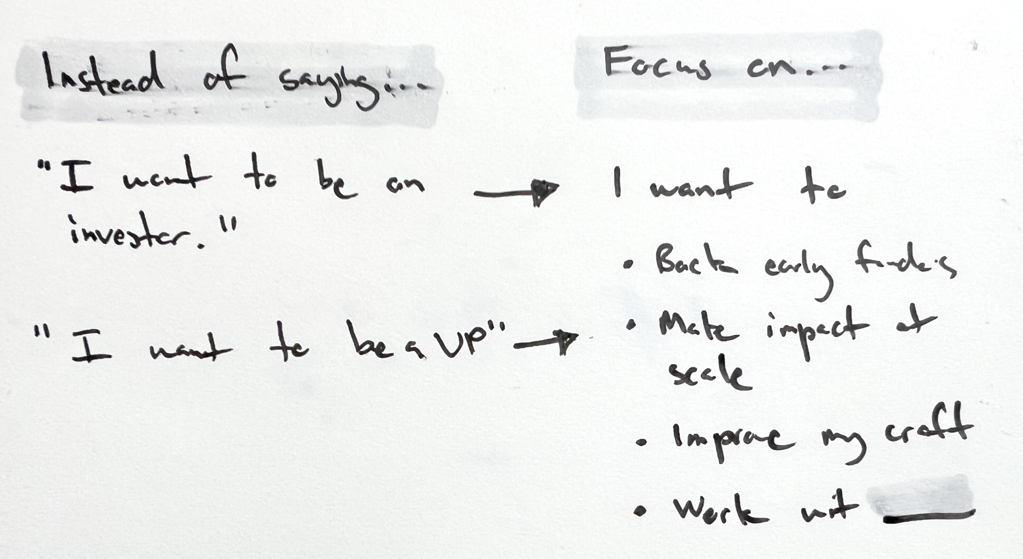 Let these paths grow organically. I discourage excessive effort because it can detract you from your current work and focus. It’s important to keep doing great work. What you can do is iterate on the paths based on your continued learning. When I set a parallel path for investing, I started angel investing and advising for three years. I did not rush into it, and I still have heaps to learn.